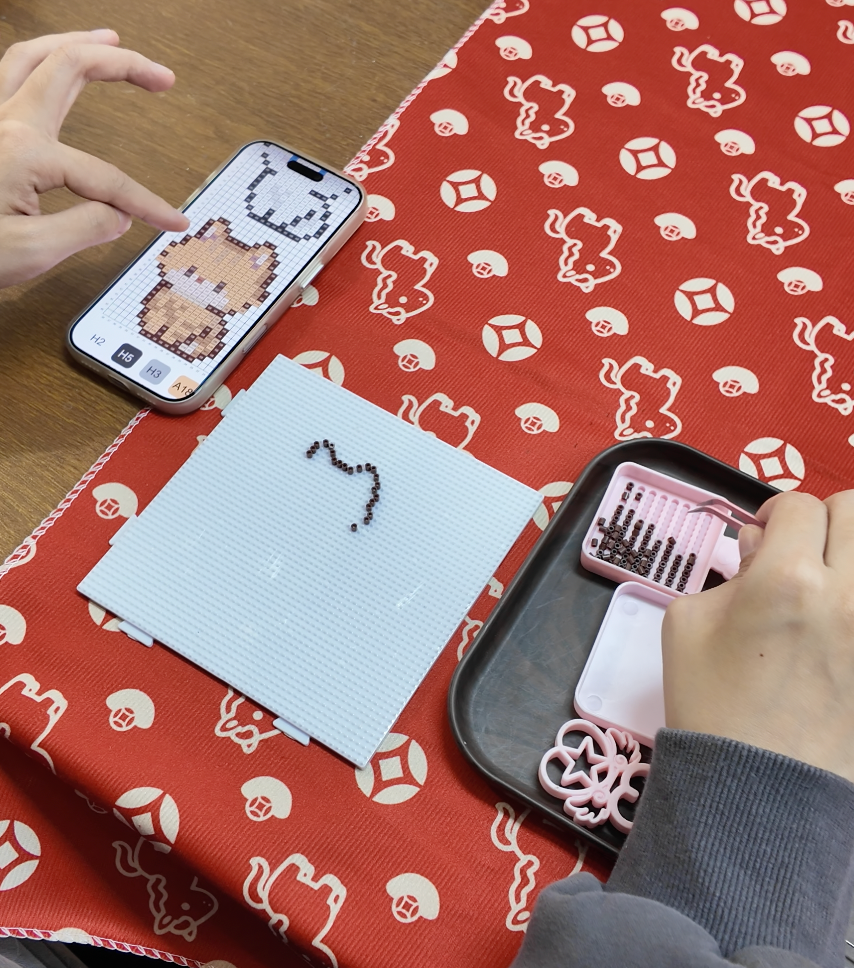另一位顾客钟女士则在为闺蜜的婚礼定制“新娘装Hello kitty”拼豆礼物。“拼豆能让人静下来,专注做一件事,暂时逃离手机。”她强调,自己在家不会拼,但会和朋友约着来店,“这里其实也是一种社交场景。”