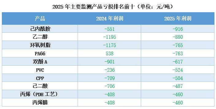 亏损前十的产品中,纯苯下业占了3个名额(己内酰胺、双酚A和己二酸)。